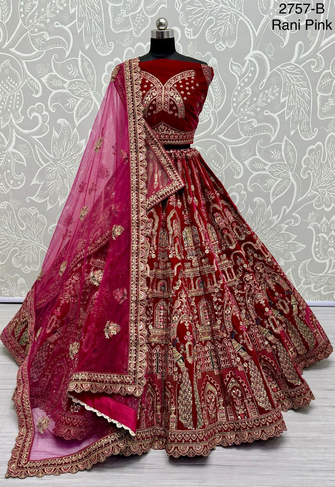 New Design 2757 Four Meter Plus Flaired Velvet Embroidered Lehengacholi