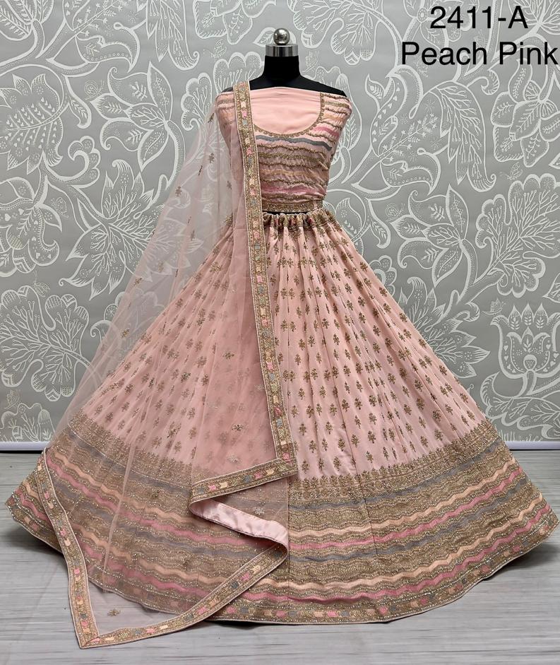 Intricate Zari And Thin Dori D No 2411 Metalic Embroidered Designer Lehenga Choli