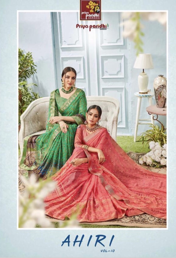 Ahiri Vol 10 By Priya Paridhi Fancy Brasso Printed Saree Catlog Wholesale Dealer Surat