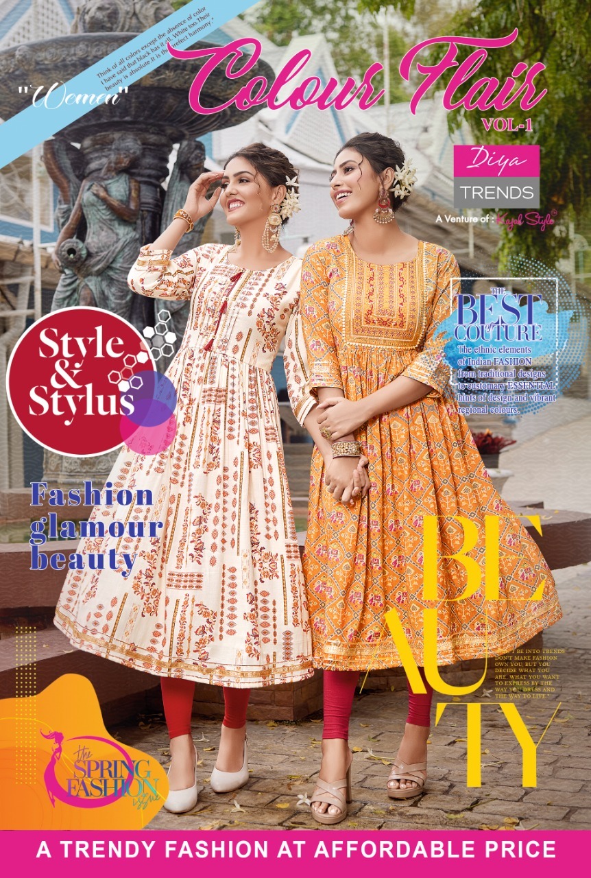 Colour Flair By Diya Trends Designer Nyra Cut Kurti Wholesaler Supplier From Surat