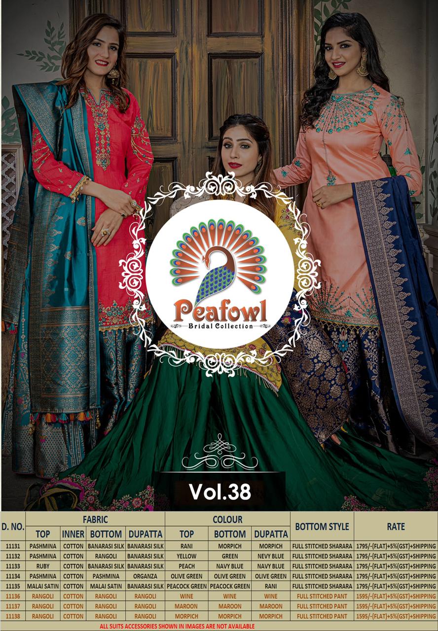 Peafowl Vol 38 Series 11131 To 11138 Designer Party Wear Suits Wholesale Supplier Nd Dealer Gujarat