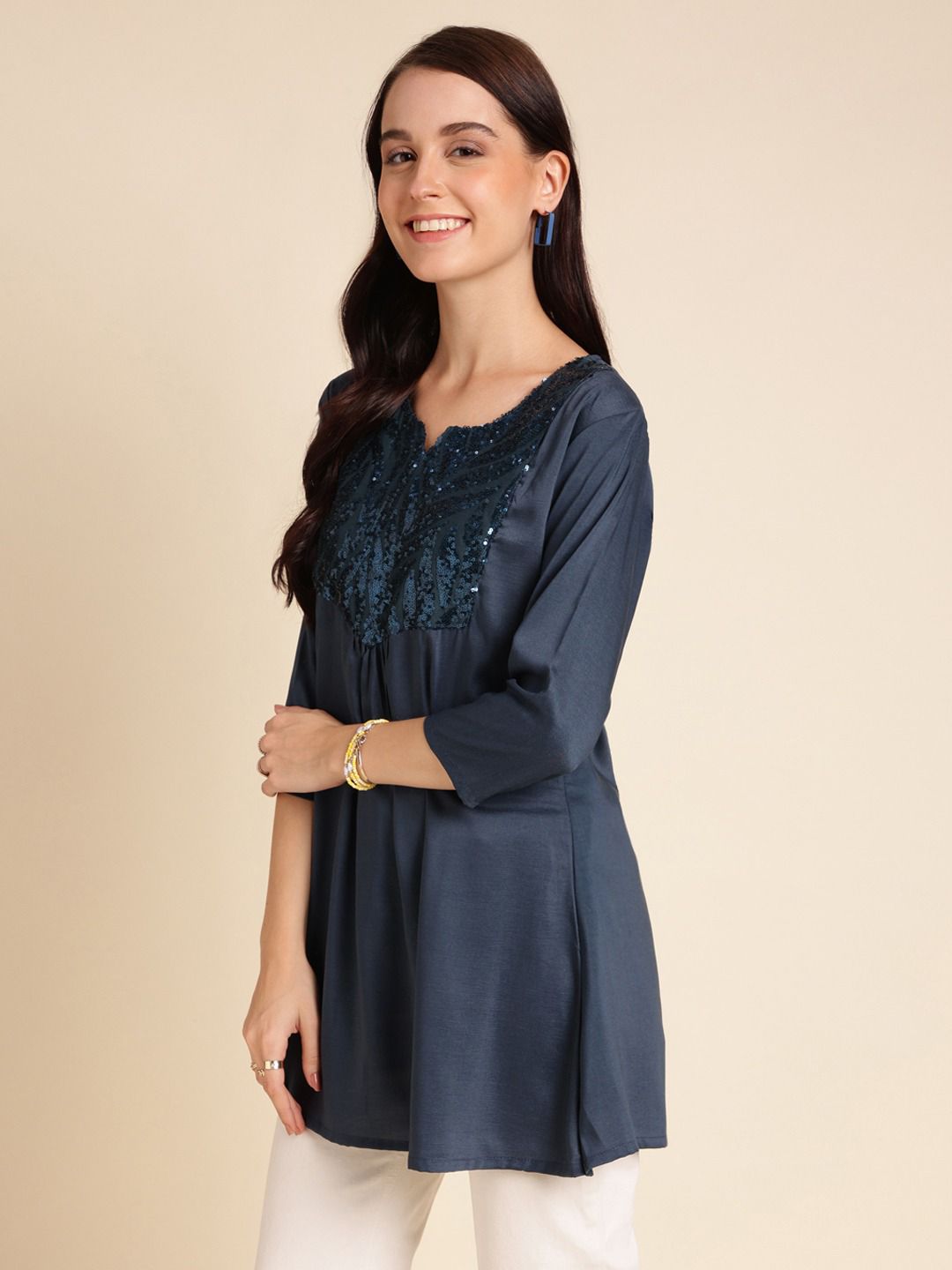 100 Miles Manvi Pure Cotton Pintex Lace Detailing Top