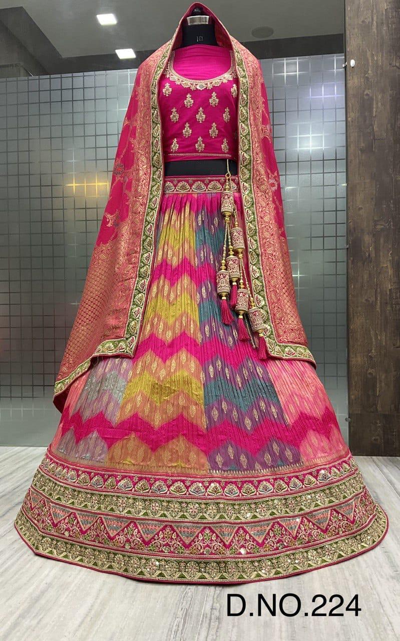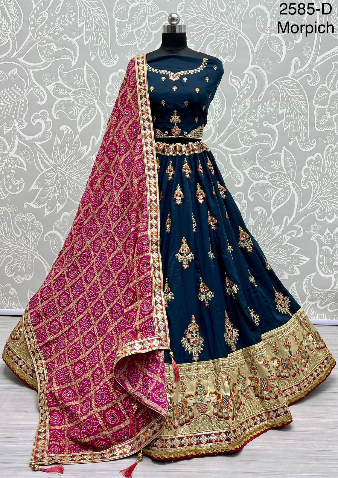 Latest Lehenga Design 2585 Hand Mirror Crafted Bandhani Print Pure Gadhwal Silk Lehengacholi