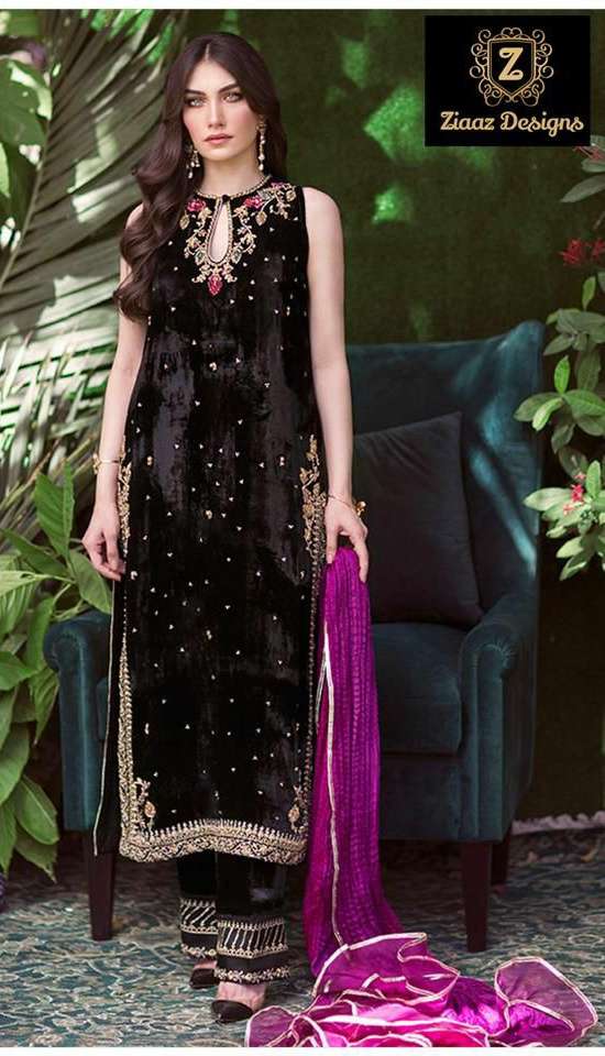 code 644 by Ziaaz Designs Velvet Semi stitched suit collection manufacturer surat